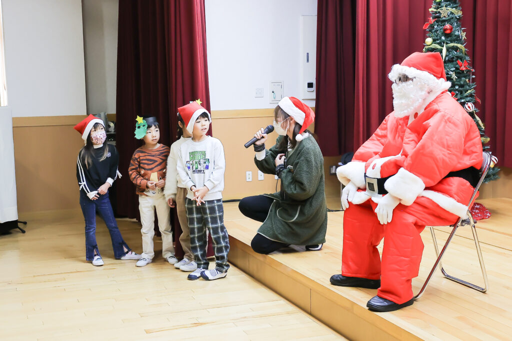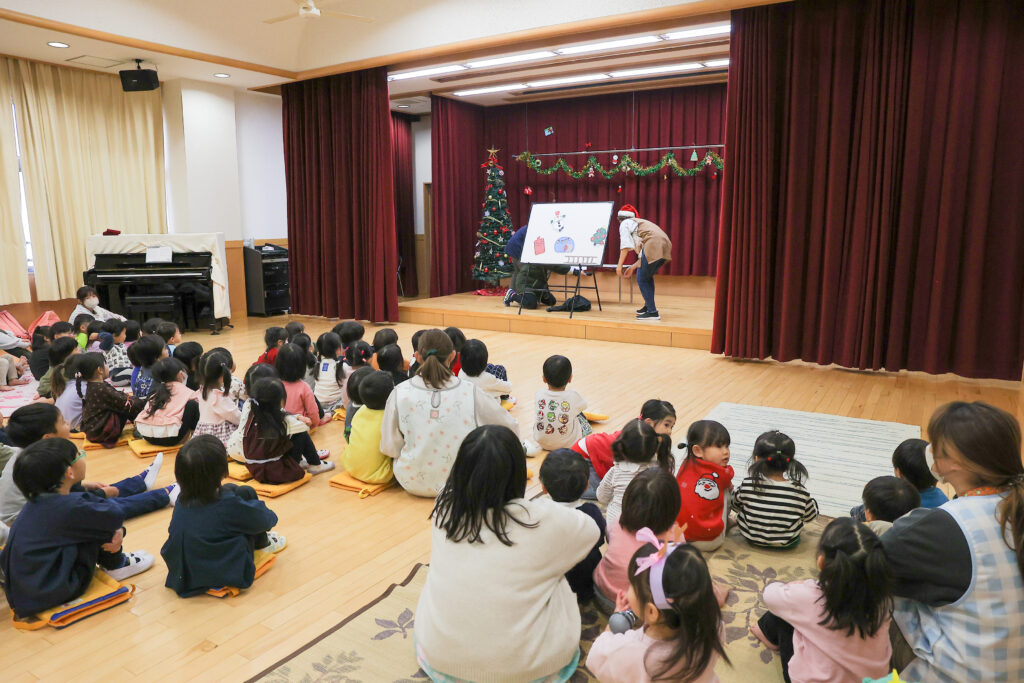 クリスマス会!! 先生たちの出し物を見たり、みんなで歌をうたったりと楽しく過ごしました。